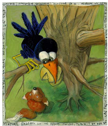On aimait bien ces Fables à l'école, un renard rusé, un corbeau stupide, un loup qui discute le bout de gras, un lièvre qui pense tout haut, l'agneau qui défend sa peau .... que de personnages venaient peupler notre imagination.