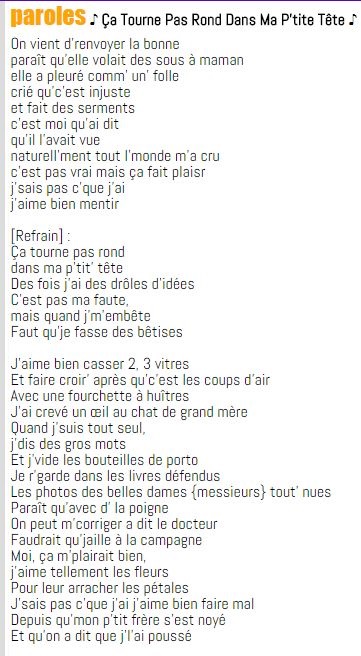 Ca tourne pas rond dans ma p'tite tête .