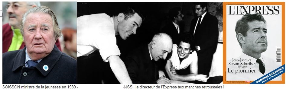 Tenez vous vous souvenez de JJSS ! Jean Jacques Servan Schreiber , le patron de l'express , l'homme jeune qui va balayer tous les vieux gaullistes ! l'homme aux manches retroussées , lui il vendait son image de jeune , atlantiste a 100 % , créer un hebdomadaire comme l'Express ça coûte cher, et puis il faisait tellement américain avec sa tronche de fayot de la classe mais riche, les américains voulaient affaiblir De Gaulle et JJSS était leur homme idéal. Lui il incarnait la jeunesse et la réussite d'ailleurs beaucoup sont tombés dans la panneau .