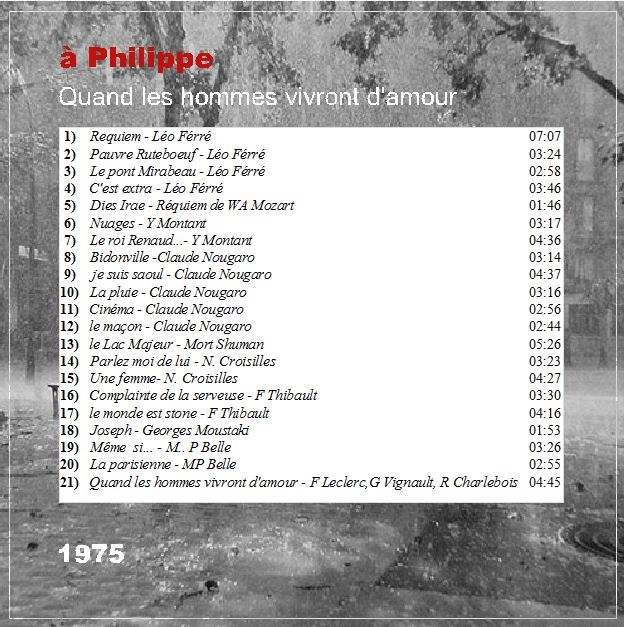- A Philippe - un ami mort à 27 ans . les chanteurs qu'il aimait .