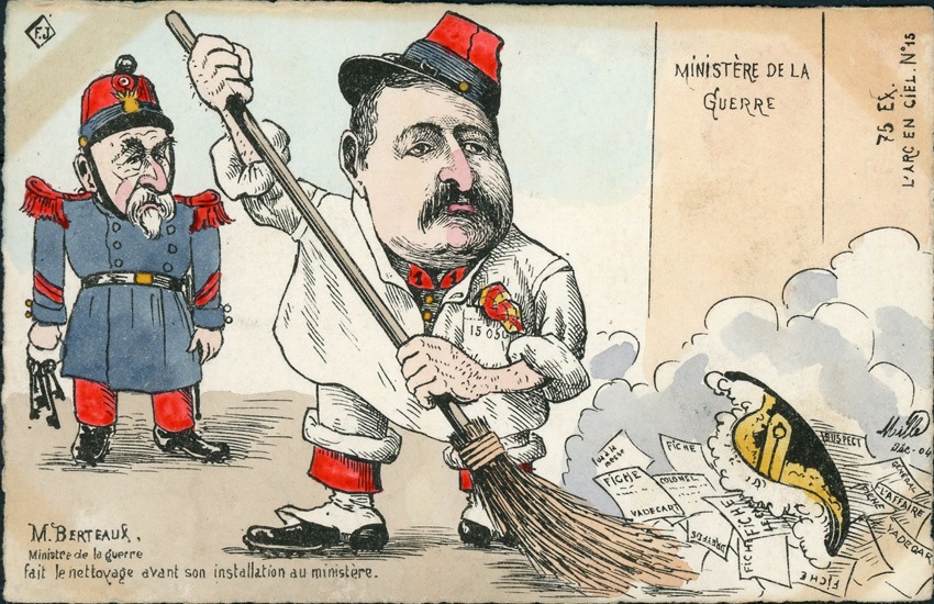 L' "affaire des fiches" dévoilée en octobre 1904 par la presse de droite génère un scandale à la Chambre des députés. La gifle portée par le député nationaliste Gabriel Syveton au ministre de la Guerre André contraint ce dernier de démissionner et après lui, le gouvernement Combes tout entier. Cette politique a eu pour conséquence la rupture des relations diplomatiques avec le Vatican et conduit à l'adoption, le 9 décembre 1905, de la loi instaurant la séparation des Eglises et de l'État.