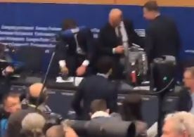 « À Strasbourg, j’ai marché sur la montagne de mensonges que Moscovici a écrite contre notre pays ! L’Italie mérite le respect », a-t-il expliqué, précisant que le soulier était" ‘Made in Italy".
