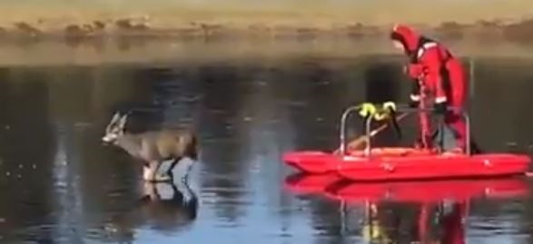 L'homme sauve cette jeune biche et avant de retourner voir sa mère elle se retourne et remercie l'homme !