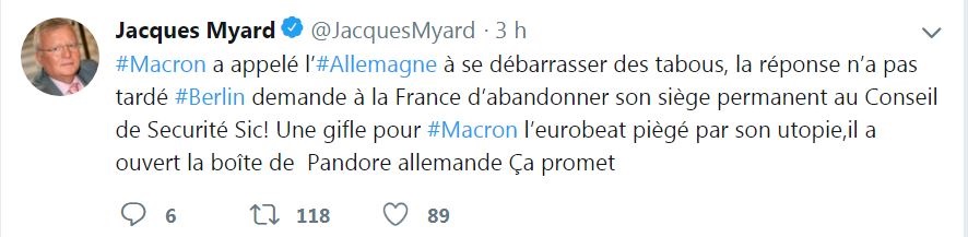 ... il est à la solde et aux ordre de l'Allemagne et de Bruxelles, les français n'y trouvent aucun intérêt ."