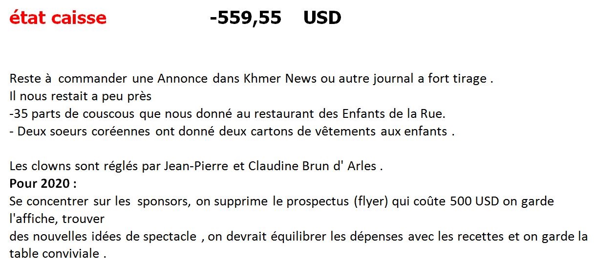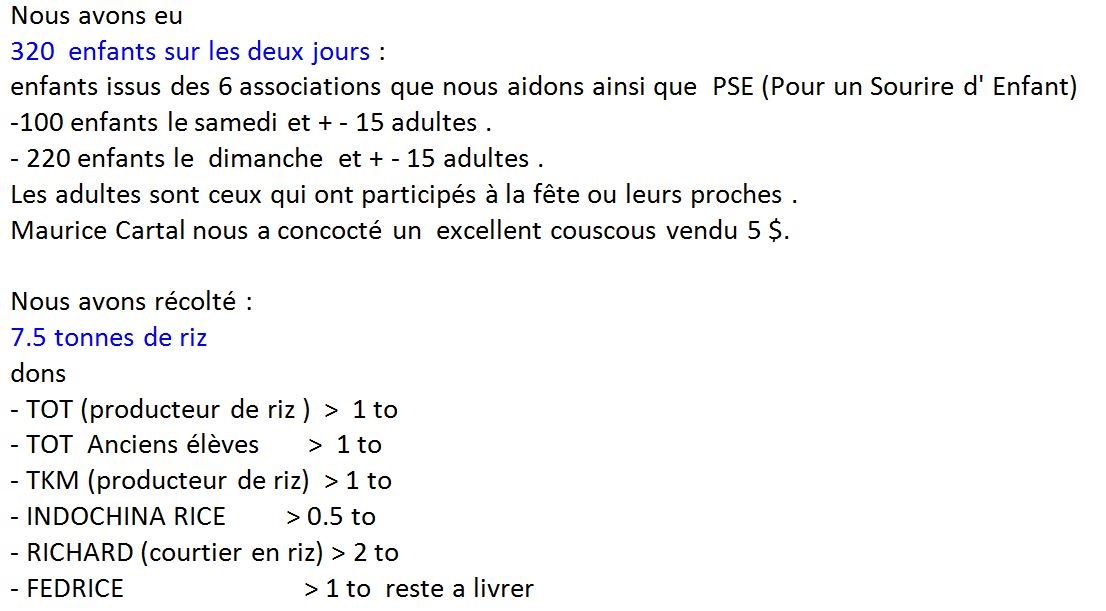 -A- recherche de dons , trouver des sponsors pour la fëte - voir liste 2017 - Ces dons servent a payer les dépliants imprimés et les affiches , une fois tout frais payés on achete du riz par 25/10/5kg ou 1kg.