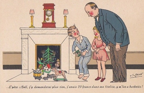 - Ha ! Ce vin d'Arbois me grise Père Noël ! Il est très bon ! Mais vous devez être plein de bleus a force de passer par les cheminées ?