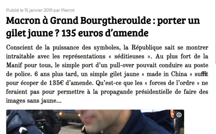 Je vous accorde que les Gilets Jaunes ne sont pas sûrs de gagner mais en face c'est pas loin de la Bérésina, car ils n'ont plus que des grenades et des flashballs pour toutes réponses car leurs idées sont périmées , leur système est mort.
