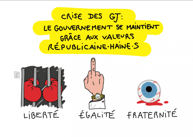 La répression ne fait que creuser l'écart entre deux mondes qui s'éloignent de plus en plus, en gros les bobos contre les beaufs. On va vers plus de violences policières, plus de mensonges d'état et ces chers médias.dont les journalistes sont bousculés par nos Gilets Jaunes parce qu'ils mentent comme des arracheurs de dents. Si vous aviez encore quelques illusions avouez que les Gilets Jaunes ont eu le mérite de faire tomber les masques des faux démocrates , et de faire apparaître l'amateurisme et l'incompétence du président et de ses sbires.