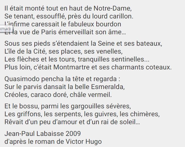 Certains esprits simples ne comprennent pas qu'on puisse pleurer sur de bouts de bois qui tombent. Les français savent bien ce que représente cette charpente de Notre-Dame : elle avait 800 ans et couronnait a 50 mètres de hauteur le transept, la nef et le choeur qui représentent 147 ans de travail .Plusieurs générations se sont succédées , des dizaines de corps de métiers, des milliers d'ouvriers, les compagnons, maitres d'oeuvre et architectes qui ont forgés cette oeuvre d'art qui est entourée de mille secrets de constructions. Elle a emerveillée chaque génération de français depuis 800 ans. Puis il y a aussi Victor Hugo qui en a fait un personnage de roman, avec l'ensorceleuse Esméralda, Quasimodo l'horrible bossu au grand coeur , l'archidiacre Claude Frollo le prêtre alchimiste un peu fou, Pierre Gringoire le barde et la majestueuse et invincible Notre-Dame de Paris , comment oublier ces personnages .
