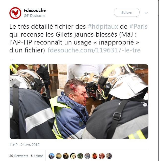 Les G.J. entrant à l'hôpital doivent être fichés comme les résistants pendant la guerre devaient être déclarés aux autorités allemandes , toubibs, flics pourquoi obéissez vous aux ordres décalés qui refletent des gouvernants perdus en phase terminale de pouvoir ?