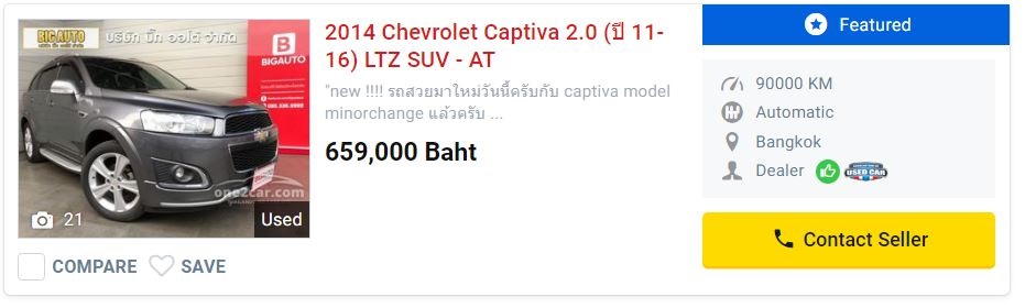 Bon an mal an on y a va esperant trouver la perle rare simonisée , c'est à 70 kms de chez nous mais il faut traverser Bangkok un dimanche il a fallu 2 heures de route quand même. Notre mégère se trouve au milieu de plusieurs dizaines de négociants toutes marques , ils attendent agglutiné les uns sur les autres les clients qui achetent de suite et ne se grattent pas le front en disant je vais réfléchir, ils ont horreur de ça ! Bref nous arrivons chez la mégère après nous avoir appelé dix fois dans la matinée pour vérifier que nous sommes sur son chemin, elle ne se lève même pas prétextant qu'elle est au téléphone avec des client (plus serieux que nous ?) et nous envoie son vendeur. Nous avons repéré une Chevrolet qui ferait bien notre affaire et demandons a l'essayer, réponse du vendeur :