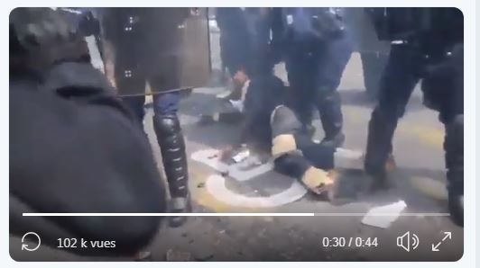 Le Général @leGneral2 5 mai Plus 💥📽️#GiletsJaunes le #1erMai : Un homme frappé et traîné par terre visage ensanglanté 😢et M. #Castaner salue encore "l'abnégation, le courage et le professionnalisme" des forces de l'ordre! 💥A envoyer à l'IGPN 🙏 #Paris #France #Macron #CastanerDémission #Macron #YellowVests.