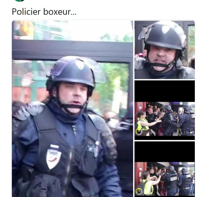Je suis en mesure de vous dire ceci : ce policier, nous l’avons observé avec @FlyRiderGj et quelques autres, 2h avant le début de la manif. On voyait qu’il avait envie d’en découdre, il regardait les #GiletsJaunes comme des proies. @FlyRiderGj, tu confirmes ?