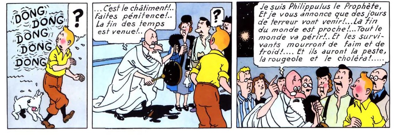 A noter que les faux prophètes etaient des excentriques isolés à l'époque de Tintin et aujourd'hui ils sont payés par les gouvernements et on leur donne même l'épée de l'académicien.