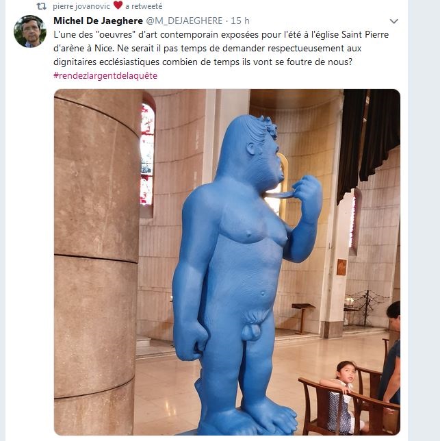 Marc Alves Marc Alves il y a 3 mois *-* Merci beaucoup pour cette nouvelle vidéo et pour votre défense courageuse de la Vérité. Puisqu'Adrien répète avec justesse qu'il se demande ce qu'il manque à tous les "traditionalistes" pour voir, je me permets d'ajouter qu'il existe à ma connaissance au moins un endroit où il est possible de voir de ses propres yeux que la contre-église conciliaire n'est pas l'Église Catholique. Ce lieu est le sanctuaire de Fatima, où j'imagine que de nombreux "traditionalistes" ont du se rendre en 2017, pour le 100è anniversaire des apparitions mariales. En face de la basilique Notre-Dame du Rosaire a été construite la "basilique de la sainte-Trinité "(sic) qui est, à de nombreux égards, l'exact opposé de la première, à commencer par son orientation géographique. Par souci de place, je vous passe les détails. La page wikipédia de la dite basilique contient des photos et descriptions qui permettent de s'en faire une idée un peu plus précise, bien qu'incomplète. J'ajoute que le crucifix en bronze suspendu au dessus de "l'autel" (qui se trouve plus bas que l'entrée, la dite-basilique étant construite en pente descendante) représente un Christ qu'on croirait de race congoïde, et crucifié à l'envers (droite et gauche inversées). A l'extérieur se trouve un gigantesque crucifix qui domine tout le lieu, avec en lieu et place de Notre Seigneur quelque chose qui ressemble à un personnage fait de bâtons de bois. Un Christ déshumanisé, en quelque sorte. J'ai visité le lieu l'année dernière et c'est en voyant ce triste et révoltant spectacle que j'ai été définitivement convaincu de l'imposture de la secte conciliaire.