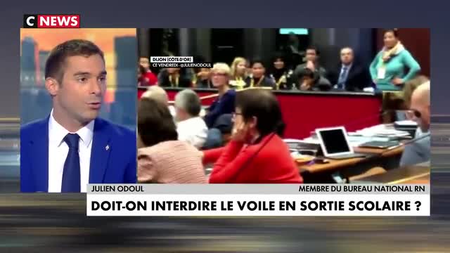 Julien Odoul, avait déjà eu une altercation en décembre dernier avec la presidente pour vouloir mettre un sapin de noël et une crèche dans la salle d 'audience ou dans le couloir , on lui a dit ; ''pas de signes religieux'' , alors il est revenu a la charge avec ce voile islamique vendredi 11 octobre. C'est a croire que toute la classe politique attend qu'un elu du RN fasse une faute pour lui tomber dessus , le pire c'est Karim Zeribi, lui il se dit républicain mais il est arabe avant tout, et le RN c'est l'ennemi a abattre, Zeribi est tombe sur Odoul comme une hyène affamée sur un bout de gras. Et les autres ont suivit et ont fait parti du troupeau, mais Zeribi a ete particulierement détestable en traitant Odoul de 'raclure' tout ça parce que la république autorise une femme voilée a accompagner un groupe d'enfants dans le cadre d'une sortie scolaire et parce que il a fait pleurer un enfant ! le fils de la dame voilee ."'Il sera traumatise a vie '''a t 'il déclaré .Tout ce petit monde de pisseur de copies n'est pas beau a voir, un spectacle pitoyable de charognards.