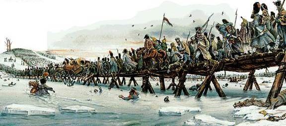 Retraite de Russie, du 26 au 29 novembre 1812 seuls 25 000 hommes pourront franchir la Berezina après avoir contruit 3 ponts ...