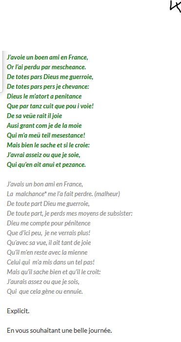 Voir texte ici en vieux français et adapté pour nous gens du XXI s. :