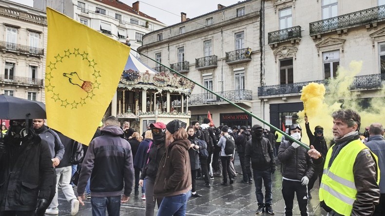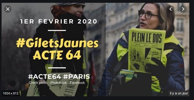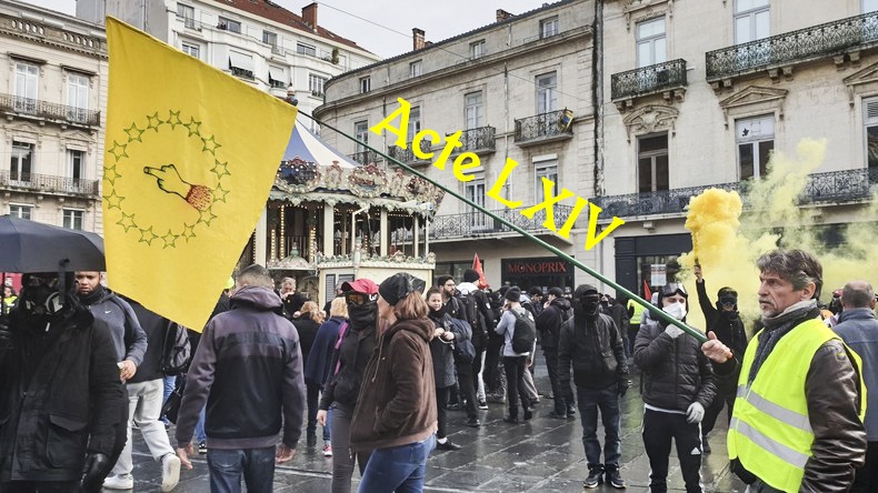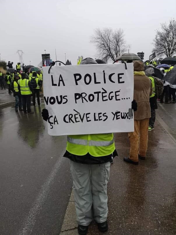 Comme la Gauche Prolétarienne dans les années '70, les Gilets Jaunes sont interdits de rassemblement à Paris près des établissements publics .Les projecteurs ne sont plus braqués sur les Gilets Jaunes alors la gauche collabo a disparue des rangs le samedi , les gilets jaunes (le vêtement) aussi car trop repérables par la BAC, jeune milice macroniste , un air d'impuissance est dans l'air , ils sont bloqués de tous cotés , nassés systématiquement par la police qui applique sans réfléchir les ordres idiots de leurs chefs . C'est une drôle de sitation : les policiers votent en large majorité Marine Le Pen , les manifestants aussi et pourtant les flics les tabassent .