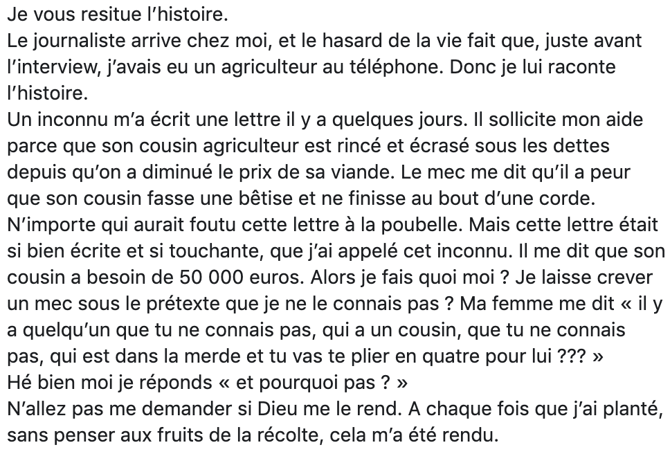 Alors oui, qd des journalistes viennent chez moi, je suis bien elevé, donc déjà 1 / je leur paye un coup. Et de 2, je leur dit ce que j'ai sur le cœur.