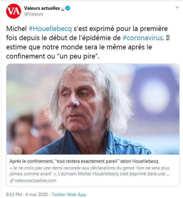 richard Vilnius richard Vilnius il y a 1 seconde Voilà un excellent acteur français qui à le ciboulot bien rempli. Vous avez raison sur tous les points cités mais permettez moi de vous dire que vous avez oublié deux points importants sur la crise du Covid : -1- en autorisant le Rovtril on a fait mourir les vieux en Ehpad en le glissant discretement dans les mains des soignants pour faire disparaître nos anciens sans souffrances , l'hospitalisation étant temporairement proscrite . -2- En France seulement on a organisé un blocus sur le protocole du Dr Raoult , qui a fait ses preuves dans nombre de pays, la raison invoquée en est que nous attendons depuis 5 ou 6 semaines les résultats des essais européens qui ne viendront jamais, faute de malades qui ne veulent pas de leurs médicaments en essai , ils veulent tous de l'hydroxychloroquine . Et enfin vous abordez avec courage le monde d'après, vous avez raison nos politiques n'ont pas contre-pouvoirs, ils sont les rois , ils se votent en permanence des lois accroissant leurs pouvoirs et leurs rétributions. Mais pour retrouver une France prospère , il faut quitter l' euro et l'Union Européenne , les mains entravées dans le dos ne nous permettront pas d'épanouir notre pays .