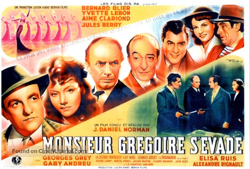 film : Mr Grégoire s'évade - 1946 - Réalisation de Jacques Daniel-Norman Avec Bernard Blier Yvette Lebon Jules Berry