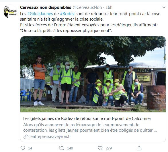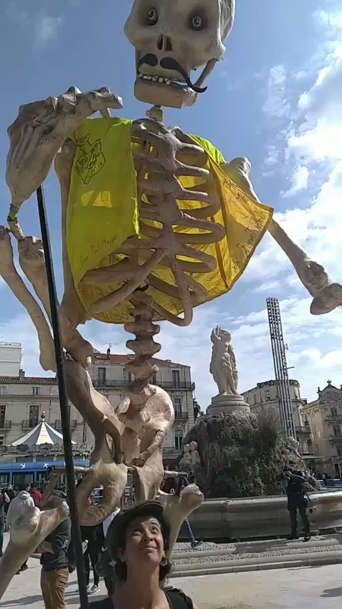 Cerveaux non disponibles @CerveauxNon · 17 mai Dangereuse marionnette ! Absolument inoffensive et festive, cette immense marionnette squelette a pourtant été l'objet de la #répression. La personne a été interpellée et son matériel confisqué. Nous essayons d'avoir plus d'infos. #Montpellier #GiletsJaunes