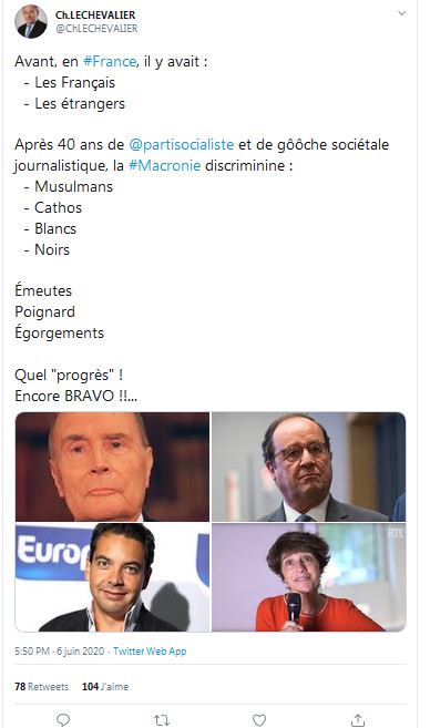 En macronie comme chez les socialos des années 1980 - 2000 valait mieux être noir ou arabe que blanc et catho pour avoir un regard de leur considération .