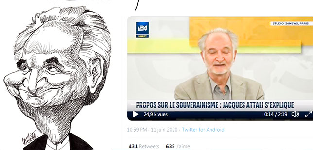 Alors qu'il y a un an il disait il faut se rallier aux (sionistes) patriotes pour récuperer les votes.Il faut se souvenir qu'Attali est mondialiste, Pro Soros, pro Obama, pour le retour des Démocrates coûte que coûte, quitte à créér une guerre civile aux USA avant les élections de novembre , il est pour le cahos économique, et pour supprimer la monnaie papier , ce type est l'antenne française du gouvernement mondialiste provisoire , donc écoutez ce qu'il dit , dans ce cas il veut renforcer les sionistes tels que Zemmour et Golnadel, ils sont sionistes avant tout.