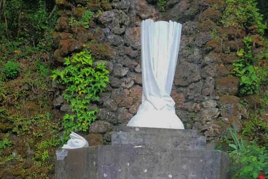 Statue de la Sainte Vierge fracassée a coups de pierres à Sumènes dans le Gard.