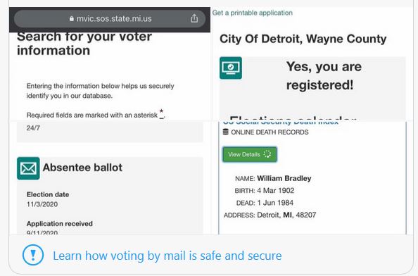 Essential Fleccas Drapeau des États-Unis @fleccas · 20h-Turns out 118 year old “William Bradley” voted via absentee ballot in Wayne County, Michigan. William Bradley died in 1984. How long has this been going on? Il s'avère que «William Bradley», âgé de 118 ans, a voté par voté par correspondance dans le comté de Wayne, au Michigan. William Bradley est décédé en 1984. Depuis combien de temps cela dure-t-il?
