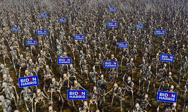 De même, le spectacle offert par les fraudes électorales, la violation flagrante des règles du vote et la falsification systématique des résultats contraste avec le discours des géants de l’information, pour lesquels Joe Biden est incontestablement le nouveau président des États-Unis. Discours univoque et ne souffrant pas la contradiction, sur la supposée fureur ravageuse d’une grippe saisonnière responsable du même nombre de décès que l’année dernière, ou sur l’inévitable élection d’un candidat corrompu et inféodé à l’État profond. Et, de fait, Biden a déjà promis de rétablir le confinement....