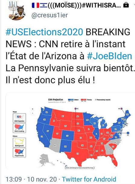 Dernière nouvelle CNN vient de retirer l' Arizona - 11 grands élécteurs - du compte Biden et passe à Trump !