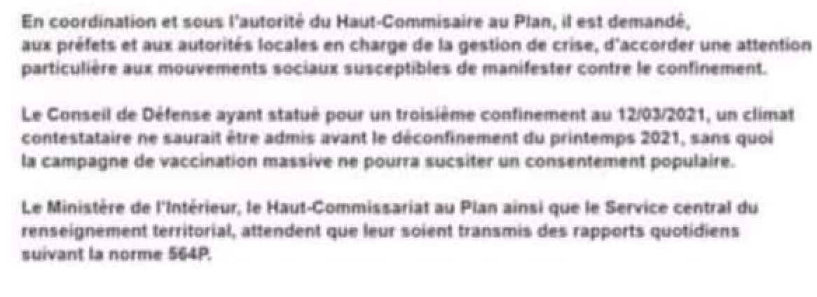 D'après la feuille de route, on va avoir un COVIPASS pour voyager et ensuite quand ce sera prêt un vaccin sera obligatoire.J'en connais qui ne voudront pas se faire vacciner, je vous conseille de vous rapprocher auprès de votre médecin en qui vous avez confiance, et de juger par vous-même si il est de notre coté et de voir avec lui comment éviter de se faire vacciner . Car si il y a une puce d'identification , j'ai même lu que Microsoft avait déjà mis au point avec des laboratoires un système très sophistiqué d'identification. je ne cautionne pas cette vidéo, je n'ai pas vérifié toutes les infos, mais dans le doute : je ne me ferai pas vacciner,car la liberté ça n'a pas de prix .