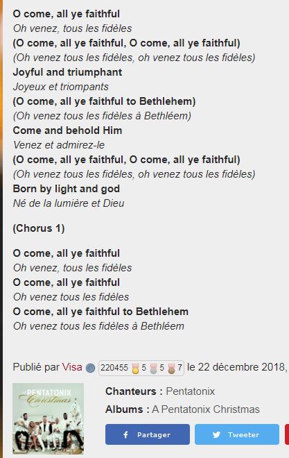 Paroles et traduction de la chanson «O Come, All Ye Faithful » par Pentatonix