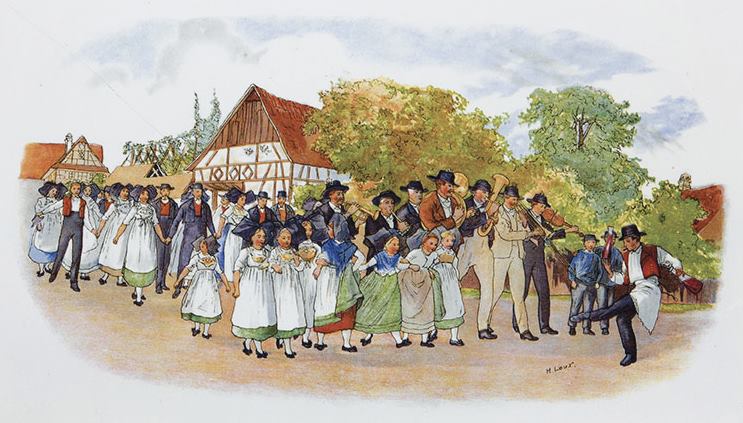 Henri Loux, dessinateur et aquarelliste, est né le 20 février 1873 à Auenheim et mort le 19 janvier 1907 à Strasbourg à l'âge de 33 ans. Auteur de nombreuses affiches, étiquettes, menus, il est surtout connu pour les illustrations de la vaisselle dite « Obernai ».