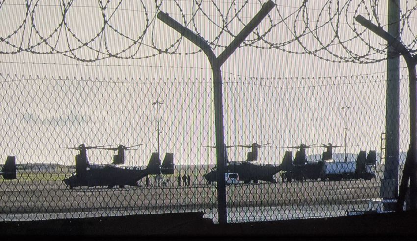 Un internaute a pu filmer quatre convertibles d’assaut V22 Osprey des Marines stationnant pendant 6h non loin du tarmak de l’aéroport civil de Nice, ce dimanche 6 décembre 2020. Il affiche entre 14h30 et 20h30. Les vidéos qu’il présente montrent le ravitaillement de leurs réservoirs avant de retourner vers la flotte américaine stationnée en Méditerranée.