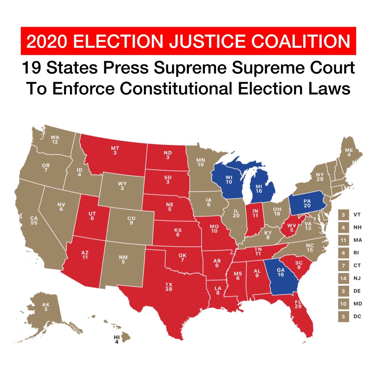 Le Texas vient d’engager une action en justice avec SCOTUS contestant les procédures électorales dans 4 États Swing.