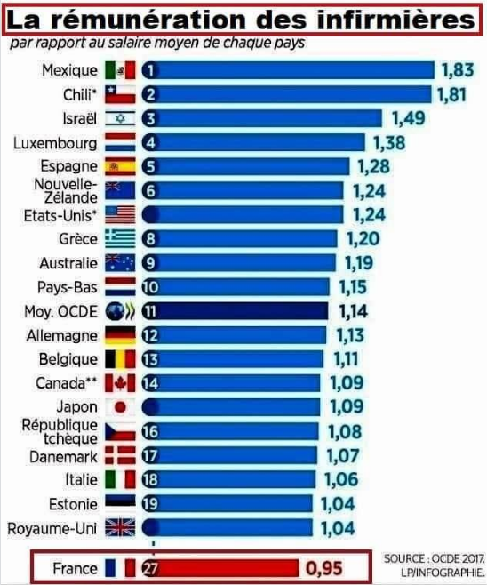 > > > Le secteur de la santé est au bord de l’implosion Plus besoin de faire un dessin pour parler de l’effondrement du modèle sanitaire français, qui faisait notre fierté depuis des décennies. On a vu où menait la fermeture des hôpitaux, la suppression de lits par dizaines de milliers, la baisse des effectifs. Nos soignants ont affronté le Covid-19 sans masques, sans blouses, sans gants, sans respirateurs, sans tests, sans médicaments. Beaucoup ont payé de leur vie l’incurie et l’imprévoyance du pouvoir. Et on apprend aujourd’hui qu’ils devront payer leurs masques !! Le modèle de santé qui se croyait le meilleur du monde a dû euthanasier ses vieux faute de moyens et faire appel aux voisins étrangers pour soigner les patients. Une médecine de guerre inhumaine. Le réseau SNCF est en lambeaux Sans entretien, avec des retards et des pannes multiples, ce service public, ex-fierté nationale, cumule une dette colossale de 47 milliards, dont 35 repris par l’État. 30 % du réseau sont à remettre en état, après des années de “tout TGV” La défense est en déclin depuis 60 ans Avec un budget égal à 1,35 % du PIB, nos soldats font la guerre avec des matériels vieux de 40 ans. Derrière la vitrine diplomatique du porte-avions Charles-de-Gaulle, il y a la misère. En 1960, avec la guerre d’Algérie, les effectifs atteignaient 1 million de soldats avec un budget porté à 5,44 % du PIB. En 1964, les effectifs chutaient à 675 000 hommes et en 2020 on tombe à 270 000 personnels dans les armées.