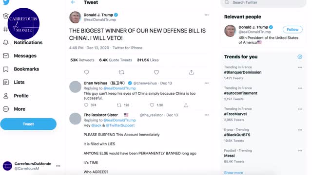 j'ai appris aussi que sur les 9 juges 6 sont républicains. De Plus Trump avait annoncé qu'il allait témoigner si nécessaire . D'après Alexis Cossette la décision de la Cour. Sup. n'aurait eu qu'un effet de sanction partisane, et de plus le temps de la justice est long. Seul un tribunal militaire pourrait statuer rapidement sur les fraudes massives et surtout sur le système informatique de programme " Dominium " dont les disques durs ont été saisis en Allemagne, en France et dont la Chine serait impliquée aussi.