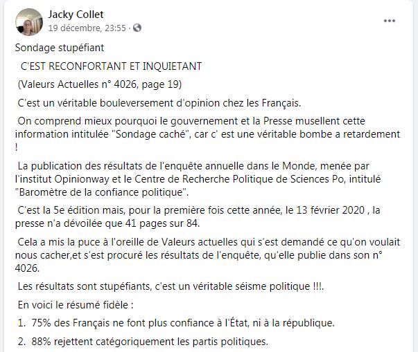 Voilà un sondage de février qui est resté dans les cartons car trop subversif ...