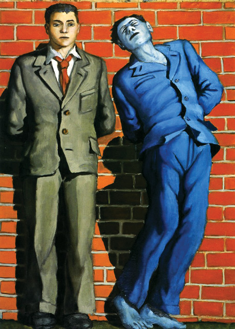 Andrzej Wróblewski est sans doute l’artiste le plus doué et prometteur de sa génération, reconnu par beaucoup comme l’un des artistes les plus importants de Pologne. Malheureusement, il meurt à 29 ans, en 1957, lors d’une excursion dans les monts Tatras. Wróblewski est né à Wilno (aujourd’hui Vilnius), qui était alors en Pologne, d’un père professeur de droit et d’une mère peintre, Krystyna Wróblewska, qui l’initie à l’art de la gravure sur bois qu’il a pratiqué de 1944 à 1946. Très jeune, il montre un grand talent artistique mais son éducation est interrompue par l’invasion allemande de la Pologne, bien qu’il assiste à des cours clandestins. En août 1941, il a alors 14 ans, son père meurt devant ses yeux d’une crise cardiaque lors d’une descente nazie. Après la fin de la Seconde Guerre mondiale, suite à l’évolution des frontières nationales de Pologne, sa mère, son frère aîné et lui déménagent de Wilno à Cracovie, où il devient étudiant au département de peinture et de sculpture de la plus ancienne école d’art de Pologne, l’Académie de Beaux-arts, où il étudie entre 1945 et 1952. Les premières peintures de Wróblewski sont d’inspiration Kapiste, du nom de ces coloristes, inspirés par Jozef Pankiewicz – mais, très vite, il se rebelle contre ce mouvement dominant et, dans les années 1948, s’essaye à l’abstraction, voire au surréalisme. Il théorise alors un art dans lequel « les éléments esthétiques et idéologiques seraient indissociables » – négation de l’esthétique coloriste où seule compte la forme. Il fonde alors le Groupe pour l’auto-éducation, avec les peintres Witold Damasiewicz, Jan Tarasin et le futur cinéaste Andrzej Wajda. C’est au cours de ces années 1948-49 qu’il peint ses toiles les plus célèbres, représentant des événements brutaux de l’occupation allemande, notamment les exécutions, où la couleur bleue, froide, devient celle de la mort.