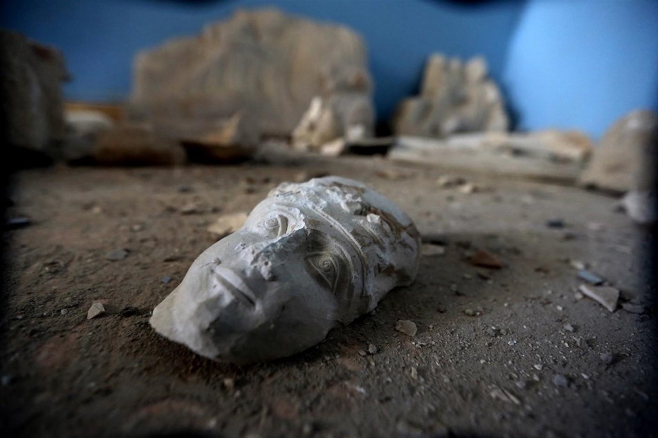 En une décennie, des sites archéologiques ont été bombardés, des musées pillés. Dans le musée de Palmyre qu’il a dirigé pendant vingt ans, Khalil al-Hariri ne peut retenir l’émotion qui le submerge en évoquant les traumatismes de ces dernières années. En mai 2015, les éléments du groupe État islamique (EI) sont en passe de conquérir la « perle du désert », dans le centre de la Syrie. Lui et son équipe resteront jusqu’aux derniers instants pour évacuer le plus d’artefacts possibles, les sauvant d’une disparition certaine. La dernière fourgonnette quittera le musée dix minutes seulement avant l’arrivée de l’EI, qui transformera le bâtiment en tribunal et prison. « Mais le jour le plus difficile, c’est quand je suis revenu à Palmyre et que j’ai vu les antiquités détruites et le musée en ruines », confie le sexagénaire. « En voyant l’état du musée, je me suis écroulé à sa porte. Ils ont détruit et pulvérisé les visages de toutes les statues qui sont restées et que nous n’avions pas pu sauver. Certaines peuvent être restaurées, mais d’autres sont en miettes. » (Khalil al-Hariri, le 7 février 2021, constate les dégâts subis par le musée de Palmyre qu’il a dirigé près de vingt ans, AFP)