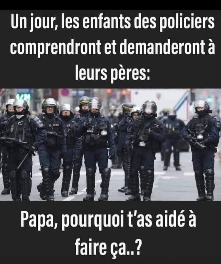 Par contre, si rien n’est entrepris, le laxisme continuera à se répandre inexorablement dans la société, provoquant au final une explosion et l’intervention de nos camarades d’active dans une mission périlleuse de protection de nos valeurs civilisationnelles et de sauvegarde de nos compatriotes sur le territoire national. On le voit, il n’est plus temps de tergiverser, sinon, demain la guerre civile mettra un terme à ce chaos croissant, et les morts, dont vous porterez la responsabilité, se compteront par milliers.