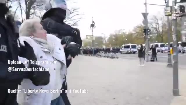 Fous, ils le sont chez toi comme chez nous .Ca se passe à Berlin, lors d'une manifestation contre les mesures de confinement, contre le passeport sanitaire je ne sais exactement et cette dame qui est emmené comme une voleuse aurait pu être ta soeur , qu'a-t-elle fait ? Elle a volé une télé couleurs chez Kaufman ? Elle a mangé un filet de cabillaud chez "Nordsee" et partie sans payer ? Non elle faisait paisiblement du "sitting" normal pour son âge , ces cons de flics s'en prennent à elle parce qu' elle est une proie facile .