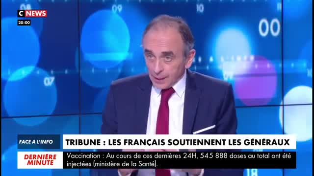 Quand le pays est dirigé par des traîtres à la nation nous sommes heureux que des généraux réagissent , quand on a un pays qui se délite , ou on viole et assassine tous les jours, avec des quartiers entiers ou les résidants vivent sous l'autorité des trafiquants de drogue , la police ne controle plus , ou des migrants clandestins s'installent porte de la Chapelle et volent les riverains , ou 30 % des gamins qui entrent en 6e ne savent pas lire , et ou les libertés sont grignotées de jour en jour et enfin ou le président et ses ministres sont hués à chaque déplacement,