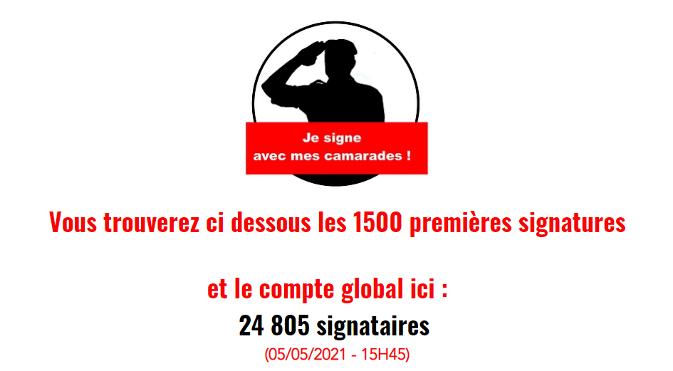 Maryline Maubois @MaryMbois · 11h "Un Colonel d'armée française vient de valider officieusement que 75000 militaires auraient signé La Tribune des Généraux et non 28000" !!! Sirène DesMers.