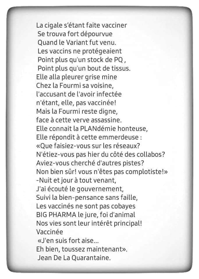 𝙈𝙖𝙭𝙞𝙢𝙪𝙨.𝙚𝙭𝙚 a aimé PFIZER HOE Seringue @YungNegrowski · 10 juin Jean de la Fontaine est en train peter les plombs