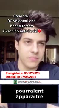 RIP 🙏😢 Michele Merlo, 28 ans, Bologne, Italie En entête de sa vidéo Tik Tok enregistrée le 03/12/2020, on peut lire en VO : 📕
