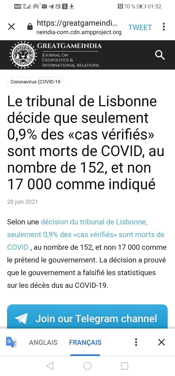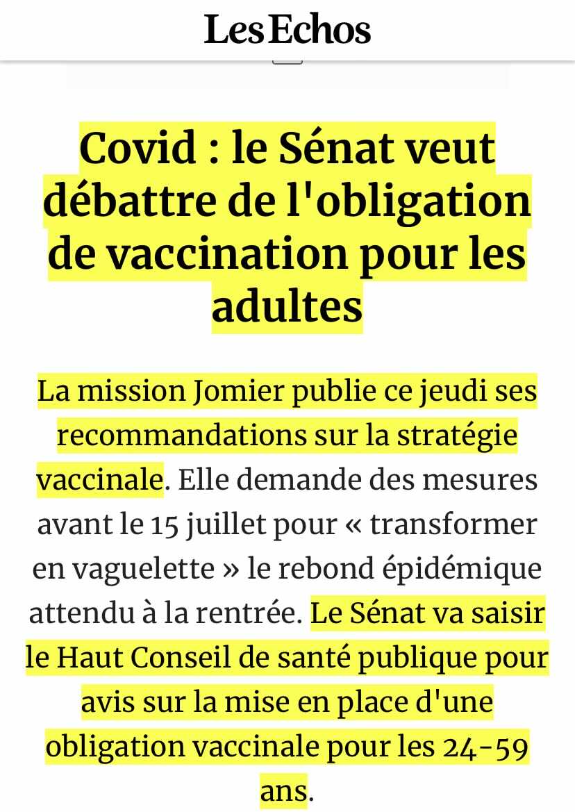 La bonne nouvelle du jour , c'est qu' à deux heures trente de Paris à Londres : FIN DU COVID ! On balance tout l'arsenal , masques, confinements, couvre-feu etc .... ils savent que plus tu confines , plus tu stresses les gens, plus le virus gagne du terrain, le 19 juillet , c 'est comme au Texas, business first chez les anglais , en France on sera obligé d'y arriver très vite aussi , ça va faire désordre quand on aura les chiffres anglais au bout d'un mois de liberté on s'apercevra qu'il y a moins de malades chez eux et pas de morts et il faudra bien arrêter la machine a bobards et remettre la France au travail .